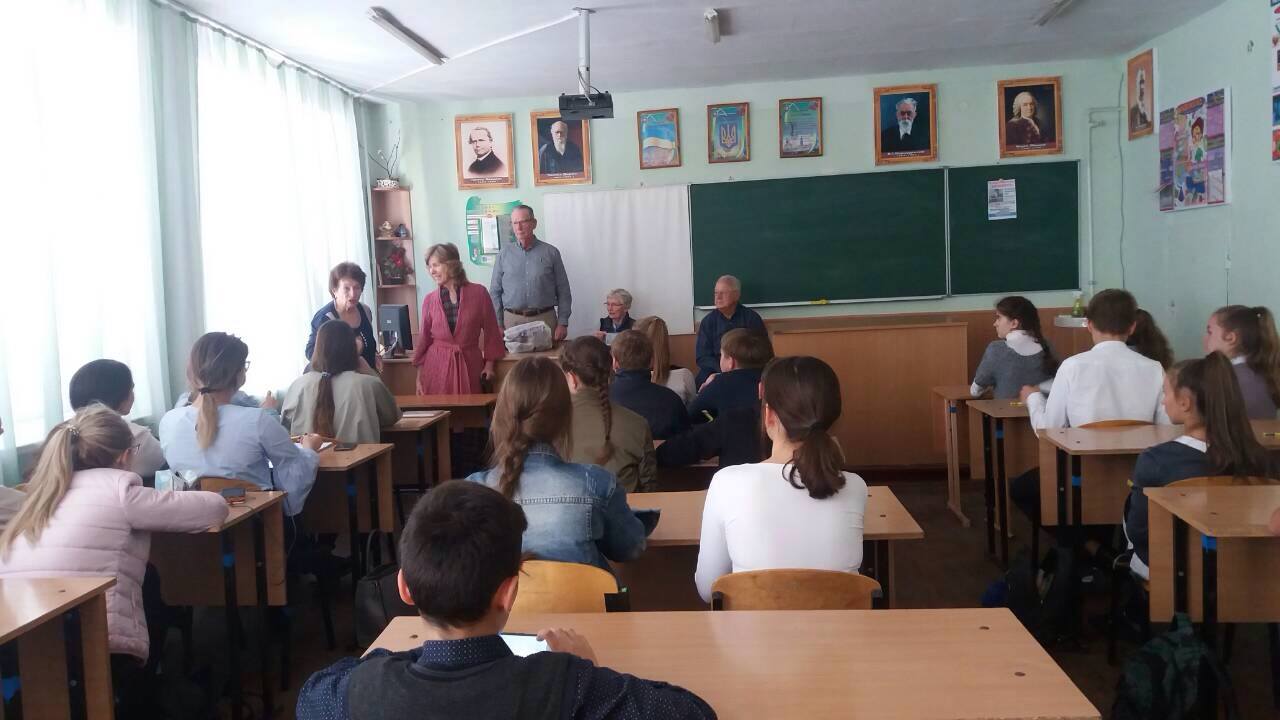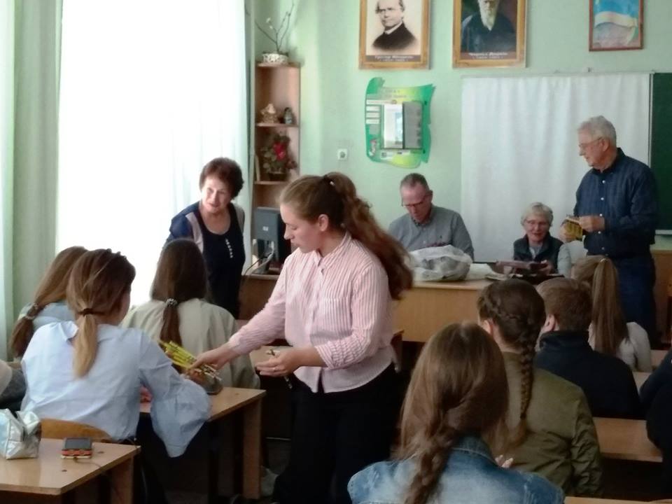 Usually we had English projects in the school #48. This month our friends Jeff and Linda Smith and Jim and Lynne Kennedy visited us. They had a meeting with students of this school and children could practice speaking in English. At the end of the meeting an English teacher of the school received from our American friends “The Jesus Storybook Bible”.